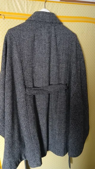 Elegante capa midi con un diseño de espiga en tonos grises y negros. Incluye un cinturón para ajustar la silueta. - Diseño de espiga. - Cinturón a juego.