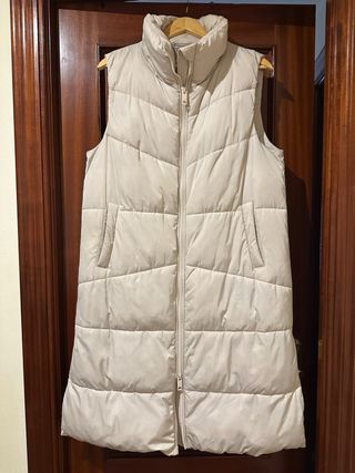 Chaleco largo acolchado de Massimo Dutti. - Diseño largo y acolchado. - Cuello alto. - Cierre de cremallera. - Bolsillos laterales.