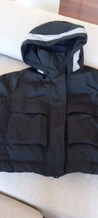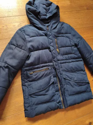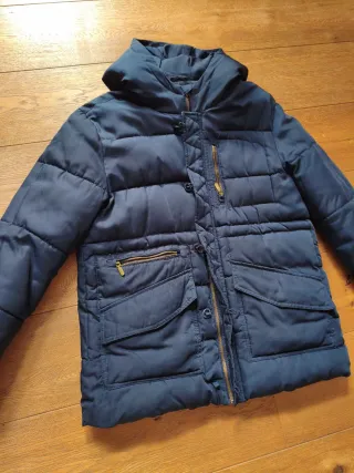 Abrigo acolchado de estilo casual. La cremallera está ligeramente rota pero cierra perfectamente. - Cierre de cremallera. - Bolsillos frontales con cremallera. - Capucha integrada.
