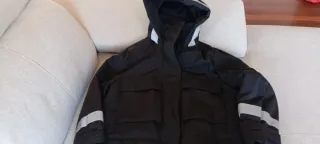 Chaqueta negra con capucha y cremallera frontal. Diseño acolchado en el interior. - Cierre de cremallera. - Bolsillos laterales con cremallera. - Capucha ajustable con cordones. - Cordones ajustables en el bajo.
