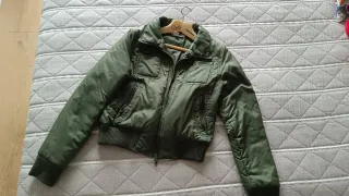 Chaqueta entallada con capucha, muy ligera y cómoda, a la vez muy abrigada. Tiene un sistema de aislamiento del frío estupendo. Dos bolsillos exteriores con cremallera, dos interiores. Se ha usado poco, se me ha quedado pequeña.