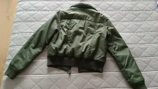 Cazadora bomber de Zara en color verde. Un básico versátil para cualquier ocasión. - Diseño bomber. - Cierre de cremallera. - Bolsillos frontales.