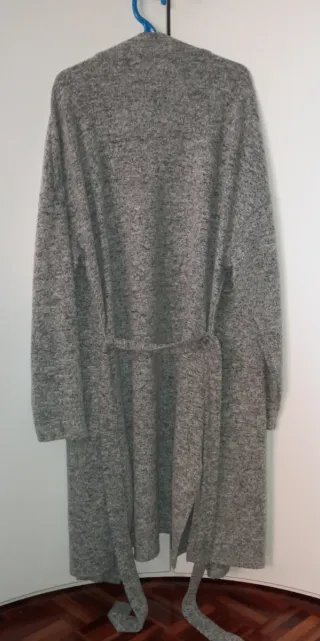 Bata larga de punto fino, ideal para estar cómoda en casa. Su diseño abierto la hace muy versátil. - Tejido suave y ligero. - Largo hasta las rodillas. - Mangas largas.