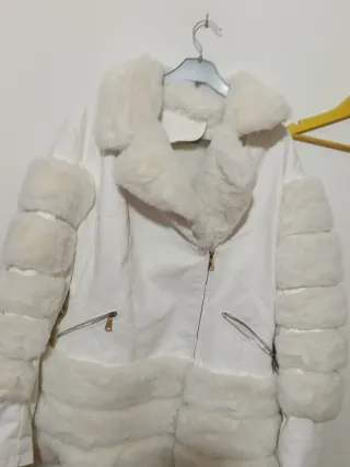 Abrigo blanco de mujer con pelo Solo usado una vez