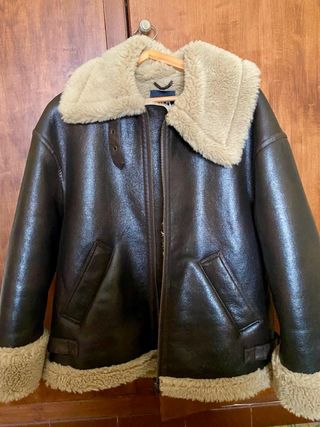 Chaqueta oversize con forro interior de borreguito. - Cierre de cremallera. - Cuello forrado. - Puños y bajo con pelo. - Bolsillos frontales.