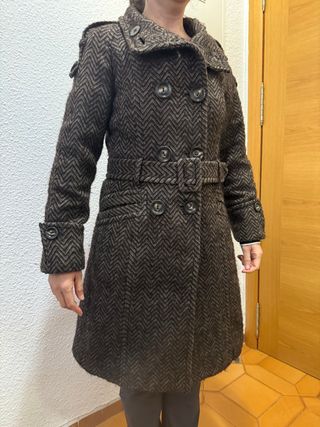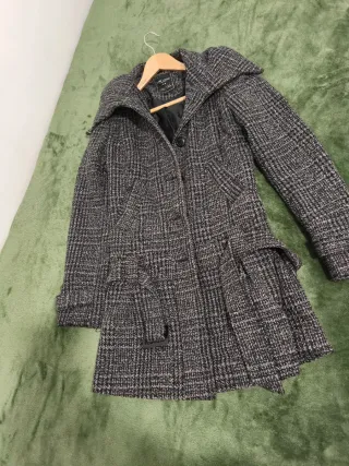 Abrigo de 70% de lana gris y negro.