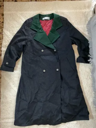 Gabardina de estilo retro, ideal para añadir un toque vintage a tu armario. Fabricada en Alemania. - Diseño de doble botonadura. - Cuello y forro interior en contraste. - Manga larga con puños abotonados.