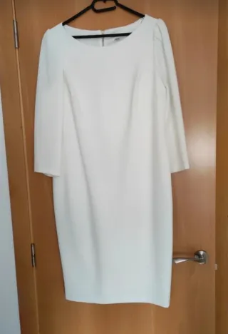 Elegante vestido de Calvin Klein, perfecto para cualquier ocasión. - Diseño sofisticado. - Color blanco. Utilizado solo un rato para boda civil