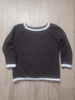 Jersey con un diseño tejido en blanco y negro. Su textura es suave y agradable. talla 13-14 como una Xs - Tejido con patrón de espiga. - Cuello redondo.
