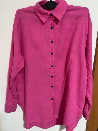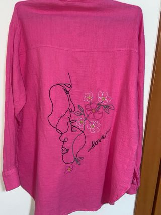 Camisa de manga larga en color rosa. Es de algidon tricotado - Cuello camisero. - Cierre de botones delanteros. - Bajo curvo. Bordado, medidas sisa 55cm larg 68cm