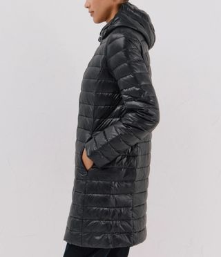 Abrigo plumífero largo para mujer de Cortefiel. Nunca se ha usado. Precio sin rebaja 139€. Rebajado 30€ - Diseño acolchado. - Con capucha. - Cierre de cremallera.