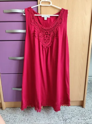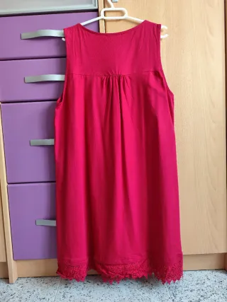 Vestido de Venca con un bonito detalle de encaje en el cuello y el bajo. - Adorno de encaje en el escote. - Borde inferior con encaje. - De algodón - Escote redondo - Sin mangas. - Corte amplio - Talla L