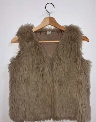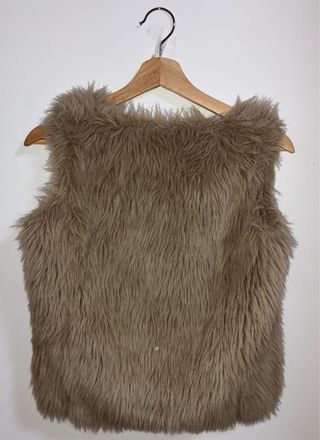 Chaleco de pelo sintético en color beige, ideal para añadir un toque de estilo. - Diseño sin mangas. - Tacto suave y peludo.