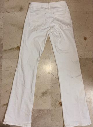 Pantalones de campana en color blanco. - Diseño de campana. - Cintura con trabillas para cinturón. - Cierre de cremallera y botón.