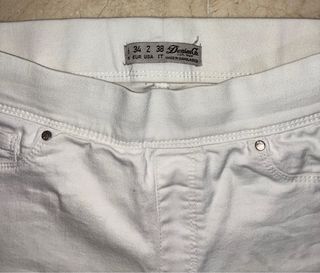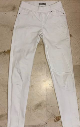 Pantalones blancos ajustados para mujer. - Cintura elástica. - Diseño de cinco bolsillos.