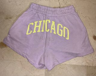 Pantalones cortos de chándal para mujer. - Cintura elástica con cordón. - Dos bolsillos laterales. - Estampado CHICAGO U.S.A. en la pernera. - Bajo con costura.