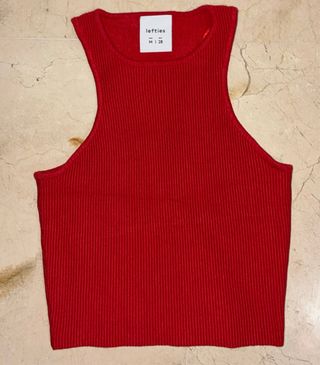 Top de canalé en color rojo, perfecto para cualquier ocasión. - Diseño sin mangas. - Cuello redondo. - Tejido elástico y cómodo.