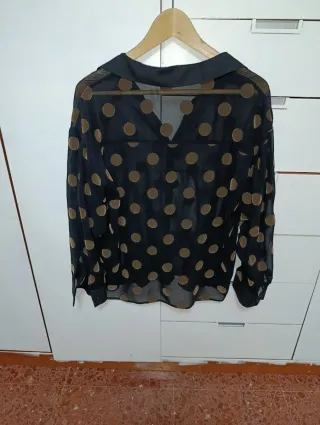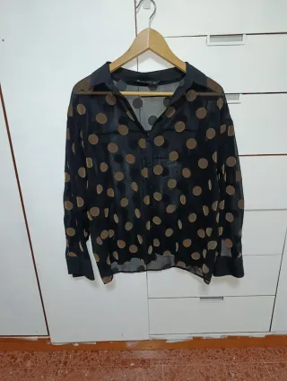 Camisa de mujer con un diseño de lunares. - Transparente. - Cuello camisero. - Manga larga.