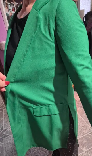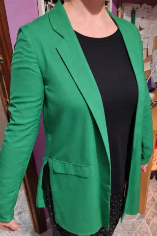 Americana verde con aperturas laterales, es finita y queda muy bonita puesta.