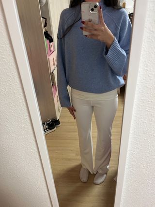 Leggings campana blancos con detalle morado