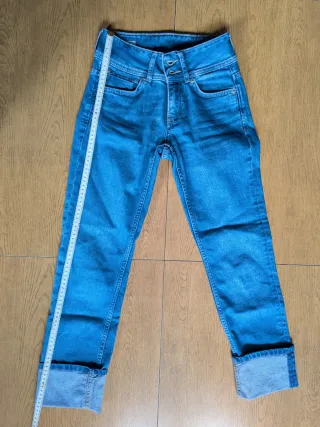 Vaqueros de la marca Pepe Jeans en talla 36. Un básico para tu armario. - Diseño de tiro alto. - Cierre con doble botón. - Bolsillos delanteros y traseros. - Dobladillo ancho en los bajos.