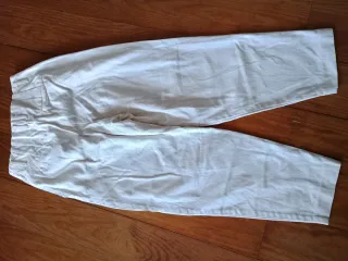Pantalones largos de corte ancho en color blanco. No son nuevos. Super bonitos! - Cintura con trabillas. - Diseño de pierna ancha.