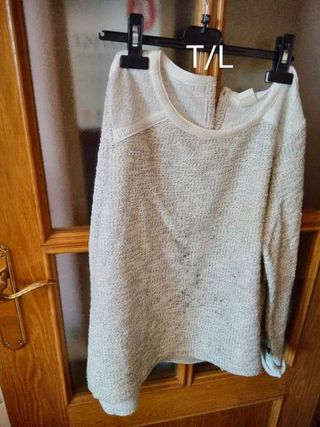 Jersey de mujer con un diseño de rayas horizontales en tonos amarillos y blancos. Es una prenda cómoda y versátil. - Diseño a rayas. - Tejido suave. Tengo de 8 y 10 euros