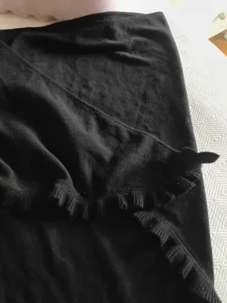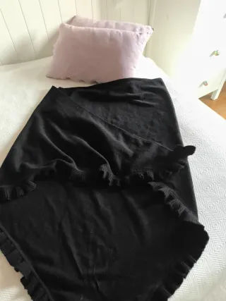 Toquilla negra con un diseño elegante y detalles de volantes. - Acabado con volantes en el borde. - Tejido suave y confortable.