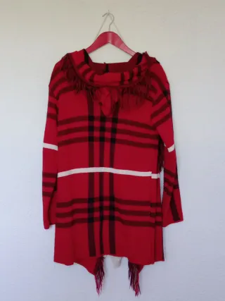 Chaqueta de punto roja con flecos Talla L