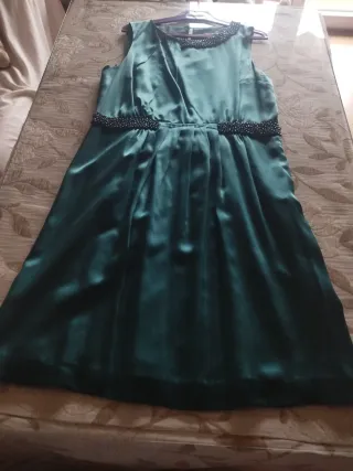 Vestido verde de raso con pedrería Talla 46