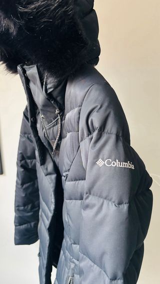 Abrigo de mujer original marca Columbia acolchado con capucha de pelo sintético. Costo 150€ en tienda. - Cierre de cremallera frontal. - Bolsillos laterales con cremallera. - Puños ajustados. - Logo de Columbia en la manga.