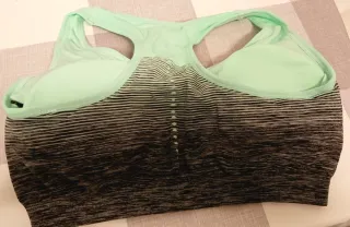 Top deportivo para mujer, talla M. Presenta un diseño degradado con líneas finas. - Diseño ombré. - Tirantes tipo nadador. - Almohadillas extraibles.