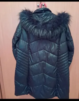 Abrigo acolchado con detalles modernos. - Capucha con ribete de pelo sintético. - Cierre de cremallera frontal. - Bolsillos laterales con cremallera. Lavable en lamadora Talla 42 BUENÍSIMO ESTADO