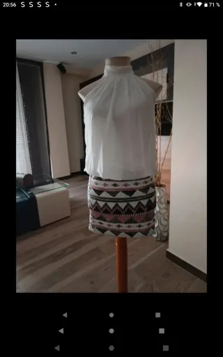 Precioso vestido de dos piezas. La parte superior es de gasa blanca y la falda está decorada con lentejuelas en tonos multicolor. Es una prenda elegante y llamativa, ideal para ocasiones especiales. -La cintura lleva gomilla -Aunque pone XL es 36/38, la cintura con la goma extensible da 84 cm y de cadera unos 95 cm - Top de gasa blanca. - Falda con lentejuelas. - Ajuste entallado - Todo forrado .