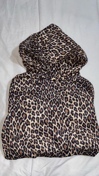 Sudadera con capucha y un llamativo estampado de leopardo. - Diseño con capucha. - Estampado de leopardo.