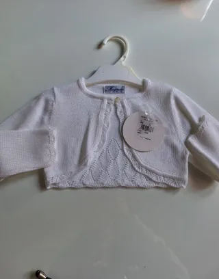 Chaqueta de punto para niña con manga larga y diseño calado. Talla 18 - Cierre con botones. - Cuello redondo.