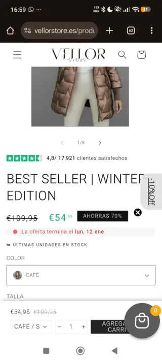 Abrigo de mujer, perfecto para la lluvia. - Diseño acolchado. - Cuello alto.Da menos talla hasta la L lleva capucha guardada