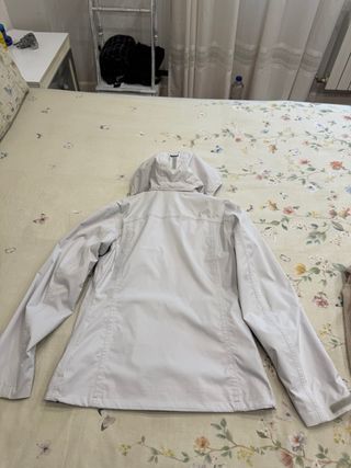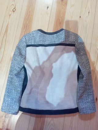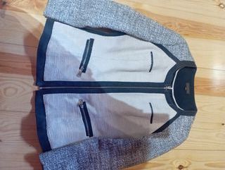 Chaqueta de Adolfo Dominguez con un diseño moderno y elegante. - Mangas de tejido texturizado gris. - Cuerpo principal en tono beige con detalles en contraste. - Cierre de cremallera frontal. - Dos bolsillos con cremallera en la parte delantera.