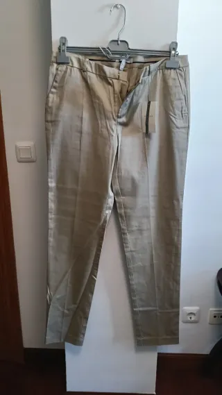 Pantalón de vestir Stradivarius en color marrón. Diseño elegante y moderno. - Cintura con trabillas. - Pinzas delanteras. - Bolsillos laterales. - Dobladillo en el bajo.