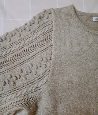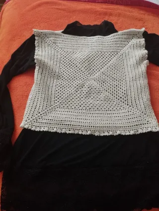 Jersey de punto fino con un bonito diseño floral en relieve. En alguna flor se han salido los hilos (últimas fotos), por lo demás está bien.
