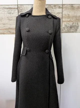 Elegante abrigo de la marca Carolina Herrera. Color negro,talla 4 y corte entallado y doble botonadura frontal Sus medidas son hombro 38,sisa 42 y largo 96. Usado pero aun le queda vida tiene descosido el forro interior de la manga,ver última foto