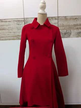 Elegante abrigo de Carolina Herrera en color rojo. Diseño de doble botonadura,corte acampanado. Talla 2, sus medidas son hombro 37,sisa 42 y largo 103