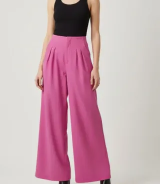 Pantalón Zara Wide Leg Fucsia Tiro Alto