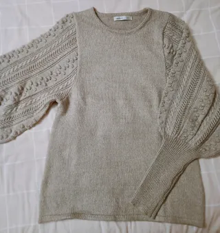 Jersey de punto con un diseño elegante en las mangas. - Manga larga abullonada con detalle calado. - Cuello redondo. - Puños largos de canalé.
