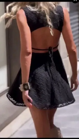Vestido corto con un diseño moderno y elegante.SIN ESTRENAR .de camaleonica elastico se adapta súper bien .pvp 115e - Escote pronunciado en V. - Aberturas laterales. - Detalle de anillas en la cintura. - Falda con vuelo.