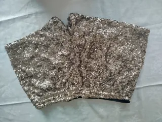 Shorts con un diseño brillante y llamativo, cubiertos de lentejuelas. - Color dorado. - Material con lentejuelas. - Forro tela negra