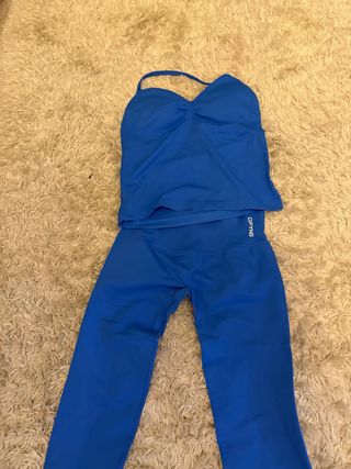 Conjunto deportivo de dos piezas. - Top deportivo con tirantes. - Pantalón largo. - Tejido elástico. push up