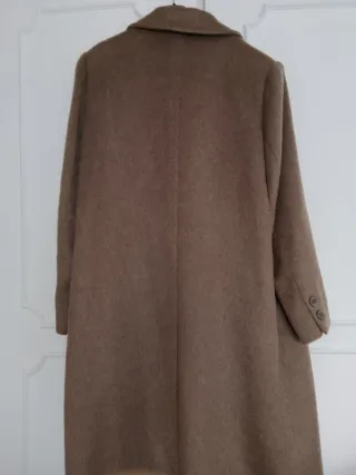 Abrigo largo de Pura Lana Virgen en tono marrón. Presenta un diseño clásico y cierre de botones. - Medidas: 44 cm de espalda , 124 cm contorno de pecho, 134 cm contorno de cadera, 118 cm de largo
