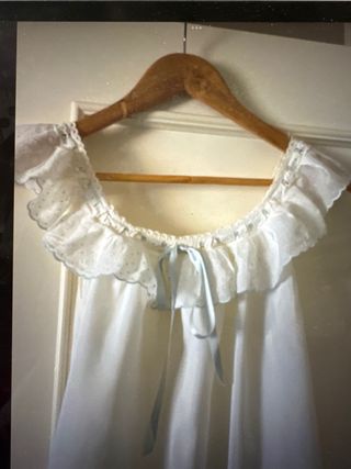 Camisón vintage para mujer, de estilo antiguo y elegante. - Diseño largo y vaporoso. - Detalle de volantes en el escote. - Lazada frontal para ajustar.