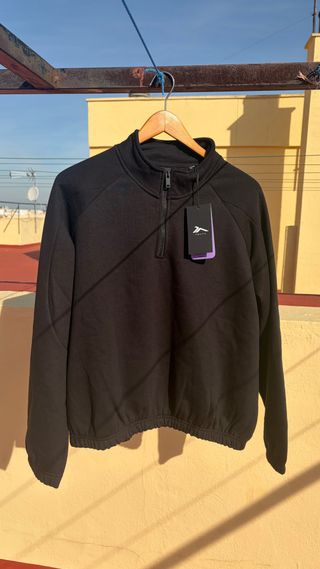 Sudadera Tenth de mujer con cuello alto y media cremallera. - Diseño deportivo. - Puños y bajo elásticos. - Etiqueta de la marca visible. - El corte de la prenda muestra el ombligo